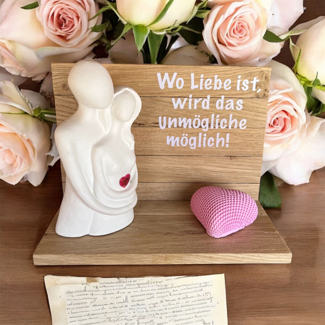 Das Dekoset "Wo Liebe ist.." mit Pärchen & Teelichthalter in der Farbe Weiß ist ein zauberhaftes Accessoire, das jedem Raum eine romantische Atmosphäre verleiht. Hergestellt aus hochwertigem Keraflott, überzeugt dieses Set nicht nur mit seiner exzellenten Qualität, sondern auch mit seinem stilvollen Design.Mit einer Länge von 16 cm, einer Tiefe von 8 cm und einer Höhe von 11,6 cm passt dieses Dekoset perfekt auf jeden Tisch, Regal oder Fensterbank. Das Set besteht aus einem entzückenden Pärchen, das sich liebevoll aneinander schmiegt, sowie einem Teelichthalter, der für eine gemütliche Beleuchtung sorgt.